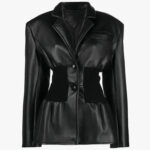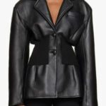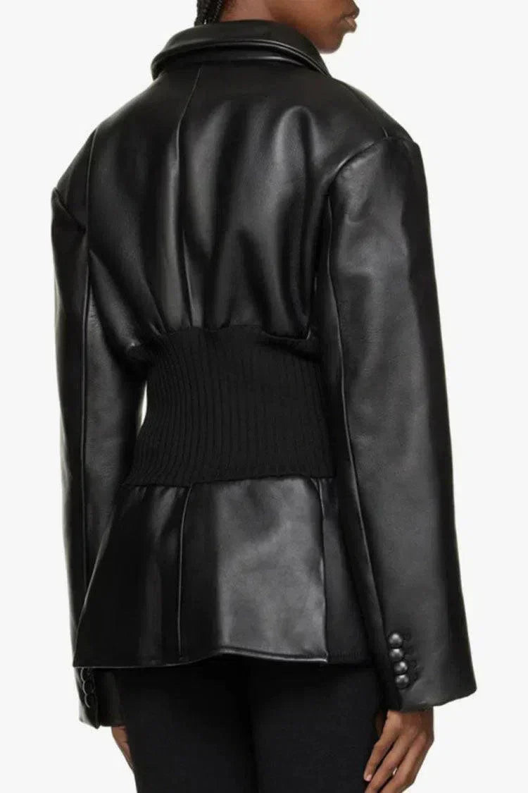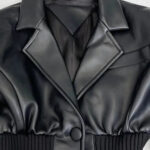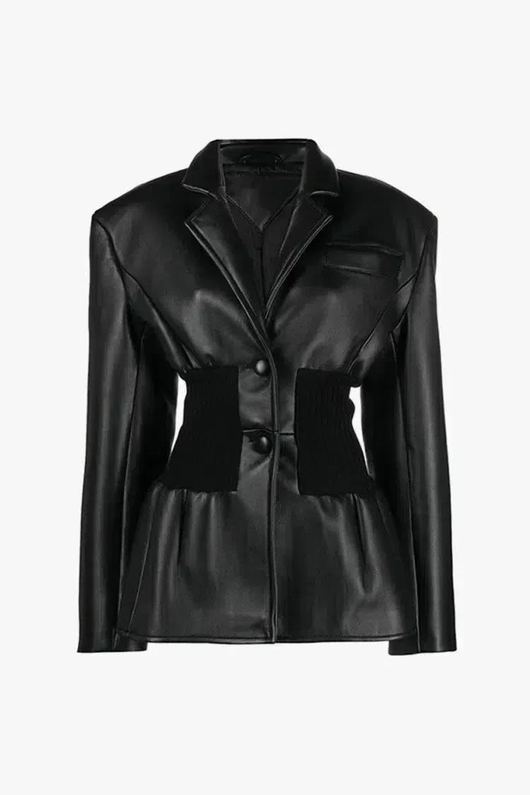 Zrób odważne wrażenie w kurtce Bettina, łączącej gładką, wegańską skórę z prążkowanymi panelami. Taliowany krój podkreśla figurę, a peplumowy dół dodaje stylowej, kobiecej lekkości.