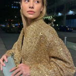 Zabłyśnij w kurtce Céleste z cekinami – idealnej, gdy chcesz przyciągać spojrzenia. Krótki fason i oversize’owy krój tworzą nowoczesną, odważną sylwetkę, a połyskujące wykończenie dodaje spektakularnego efektu.