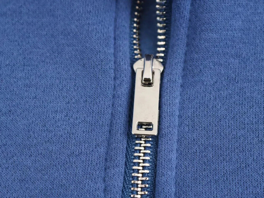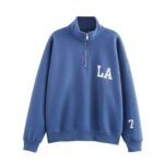 - Sweter z zamkiem błyskawicznym: długie rękawy, luźny krój i detale LA