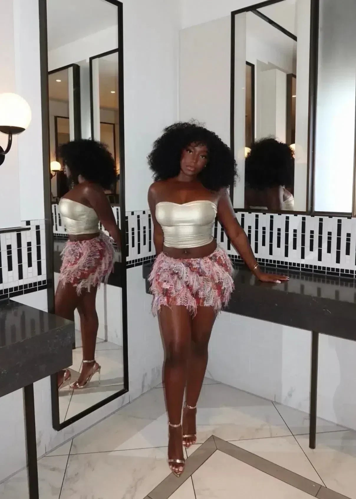 Luciana – Teksturowane frędzle – Spódnica z falbanami