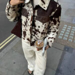 - Wyrazisty wzór w krowie łaty podkreślający modny styl