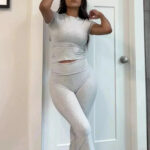 Zdefiniuj na nowo swobodny szyk z zestawem Ovidia Luxe Silhouette: dwuczęściowym zestawem składającym się z dopasowanej bluzki z długim rękawem i rozszerzanych spodni z wysokim stanem. Zaprojektowany, aby podkreślić Twoją naturalną sylwetkę, oferuje wygodę i nowoczesny, minimalistyczny wygląd, idealny do relaksu i noszenia na co dzień.
