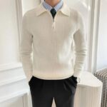To pół-rozpinany sweter, który współczesny mężczyzna w stylu Old Money wybrałby na co dzień — ponadczasowy krój dodaje klasy każdej stylizacji.