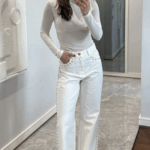 - Śnieżnobiały denim idealny do stylizacji eleganckich i codziennych